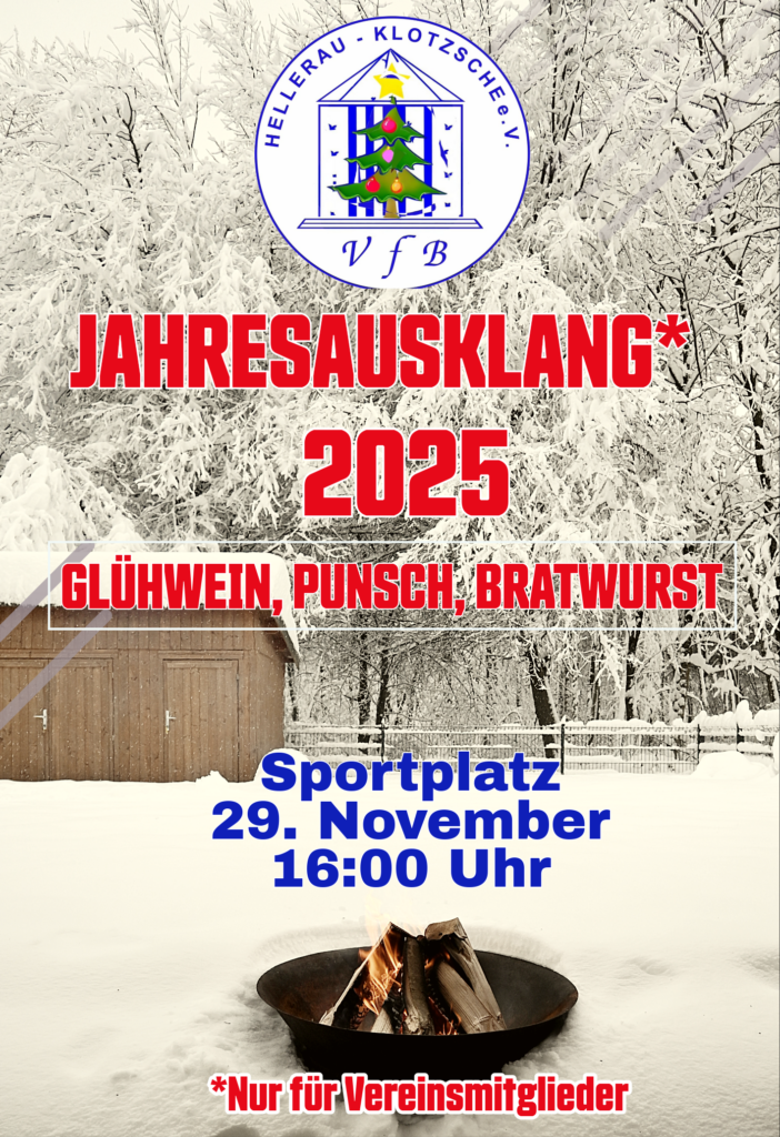 Dein Verein im Dresdner Norden NEUIGKEITEN BEIM VfB... +++ Trainer Fußball (C- und D3-Jugend) gesucht +++ Neues aus der Rubrik „Fanartikel“ Oktober 7, 2025 Badeschlappen, Weihnachtsspecial und einiges mehr…. MEHR LESEN » Fußballteams der A- und C1- Junioren im Viertelfinale September 16, 2025 Unsere C1- und A-Junioren Teams erreichen das Viertelfinale des Stadtpokal Dresden… MEHR LESEN » Adecco ist neuer Kooperationspartner des VfB August 28, 2025 Seit 1. Juli 2025 ist die Firma Adecco neuer Partner des VfB… MEHR LESEN » Wir sagen DANKE August 15, 2025 am 15.08.2025 hatte unser FSJler seinen letzten Tag…. MEHR LESEN » ÄLTERE NEWS No more posts to show INFOS EUER VfB SPORTPLATZCAM SPONSOREN VEREINSIMPRESSIONEN 2024 SOCIAL MEDIA Facebook Youtube Instagram AKTUELLES SHORTLINKS UNSER VFB Neues aus der Rubrik „Fanartikel“ Oktober 7, 2025 Mehr lesen» Fußballteams der A- und C1- Junioren im Viertelfinale September 16, 2025 Mehr lesen» Home Abteilungen News Downloads Sponsoren Über uns FAQ Gegründet 1993, 11 Abteilungen 1203 Mitglieder/-innen (31.12.2024) Karl-Liebknecht-Straße 53 01109 Dresden vorstand@vfb-hellerau-klotzsche.de + 49 (0) 351 - 8805565 Facebook Youtube Instagram Impressum Datenschutz Copyright 2022 © VfB Hellerau-Klotzsche
