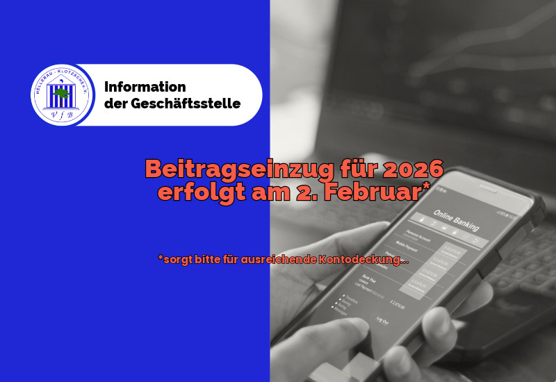 Beitragseinzug für das 1. Halbjahr/Jahr 2026 startet am 2. Februar