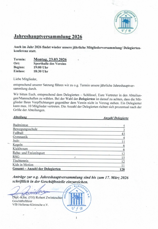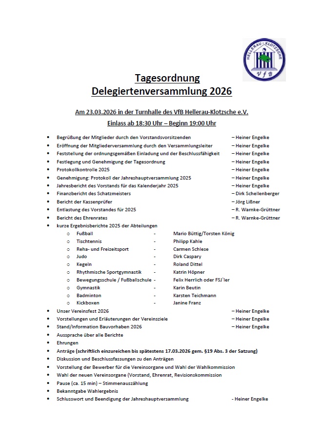 Jahreshauptversammlung des VfB am 23.03.2026 ab 18:30 Uhr