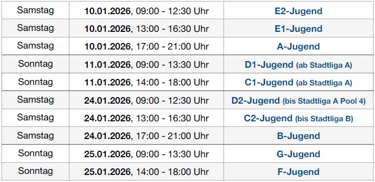Fußball - Hallenturniere TURNIERE 2026: TURNIERINFORMATIONEN: ANMELDUNG PER MAIL: hallencup@vfb-hellerau-klotzsche.de TURNIERE HIER LIVE VERFOLGEN: 6. Joachim-Liebeck Hallencup@ALLE Read More 6. Joachim Liebeck Hallencup 2026 am 10.01. - 11.01. und 24.01. - 25.01.2026, Halle Gymnasium Dresden-Klotzsche Wie läuft das A-Jugend (U19) Turnier? Hier live verfolgen Wie läuft das B- Jugend (U17) Turnier? Hier live verfolgen... Wie läuft das C-Jugend (U15) Turnier? Hier live verfolgen... Wie läuft das C2- Jugend (U14) Turnier? Hier live verfolgen... Wie läuft das D1- Jugend (U13) Turnier? Hier live verfolgen Wie läuft das D2-Jugend (U12) Turnier? Hier live verfolgen Wie läuft das E1- Jugend (U11) Turnier? Hier live verfolgen... Wie läuft das E2-Jugend (U10) Turnier? Hier live verfolgen... Wie läuft das F-Jugend (U9) Turnier Hier live verfolgen... Wie läuft das G-Jugend (U7) Turnier? Hier live verfolgen... AKTUELLES SHORTLINKS UNSER VFB 1. Männer (Fußball) spielt erfolgreichsten Stadtoberliga Auftakt der Vereinsgeschichte Oktober 10, 2025 Mehr lesen» Neues aus der Rubrik „Fanartikel“ Oktober 7, 2025 Mehr lesen» Home Abteilungen News Downloads Sponsoren Über uns FAQ Gegründet 1993, 11 Abteilungen 1203 Mitglieder/-innen (31.12.2024) Karl-Liebknecht-Straße 53 01109 Dresden vorstand@vfb-hellerau-klotzsche.de + 49 (0) 351 - 8805565 Facebook Youtube Instagram Impressum Datenschutz Copyright 2022 © VfB Hellerau-Klotzsche